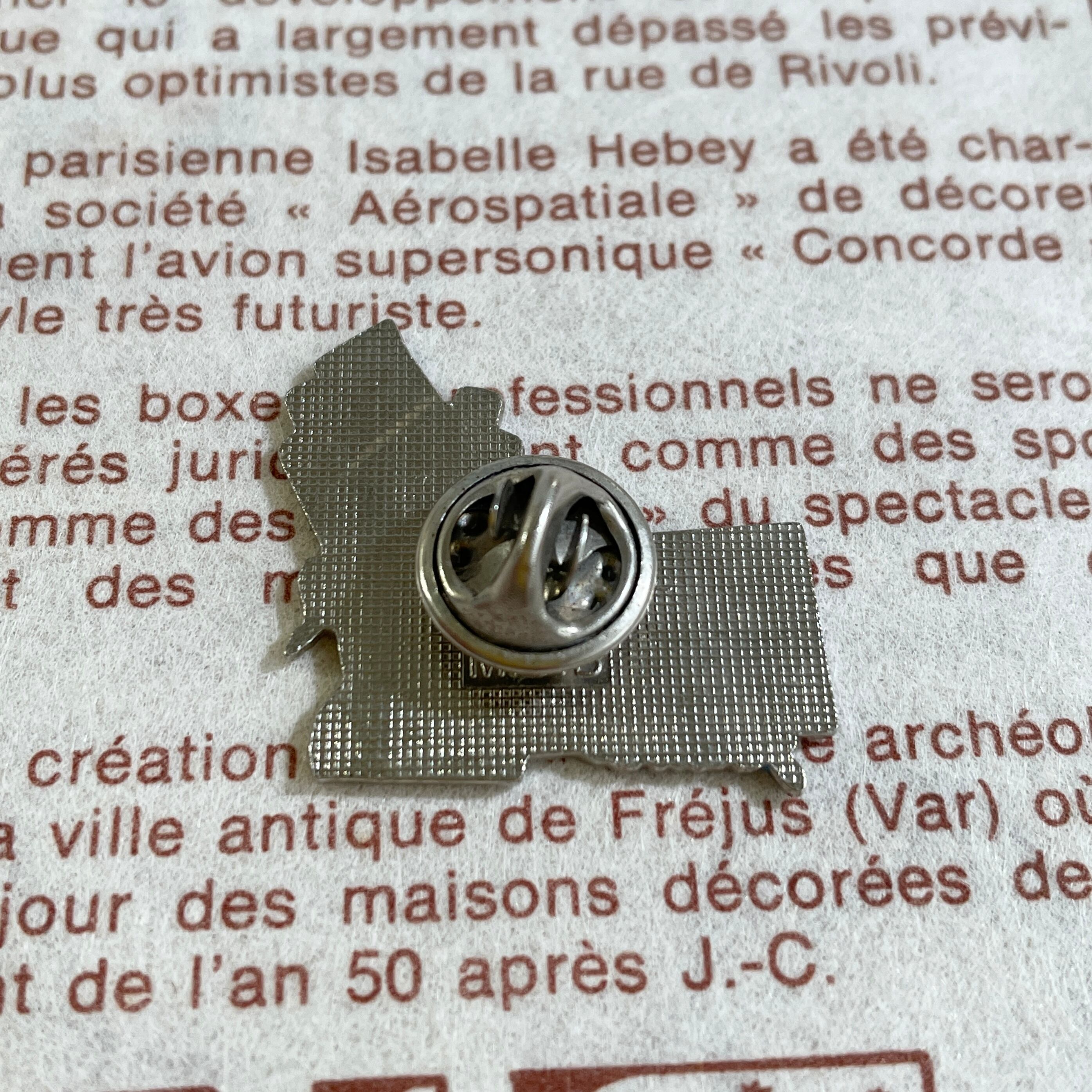 ※フランスで製造されたヴィンテージピンバッジです。当時の大量生産品であり、製造ムラや経年による傷、曇り、金具の歪み、開閉の不具合が見られる場合があります。これらの点をご了承いただき、画像をご確認の上でご購入をご検討ください。